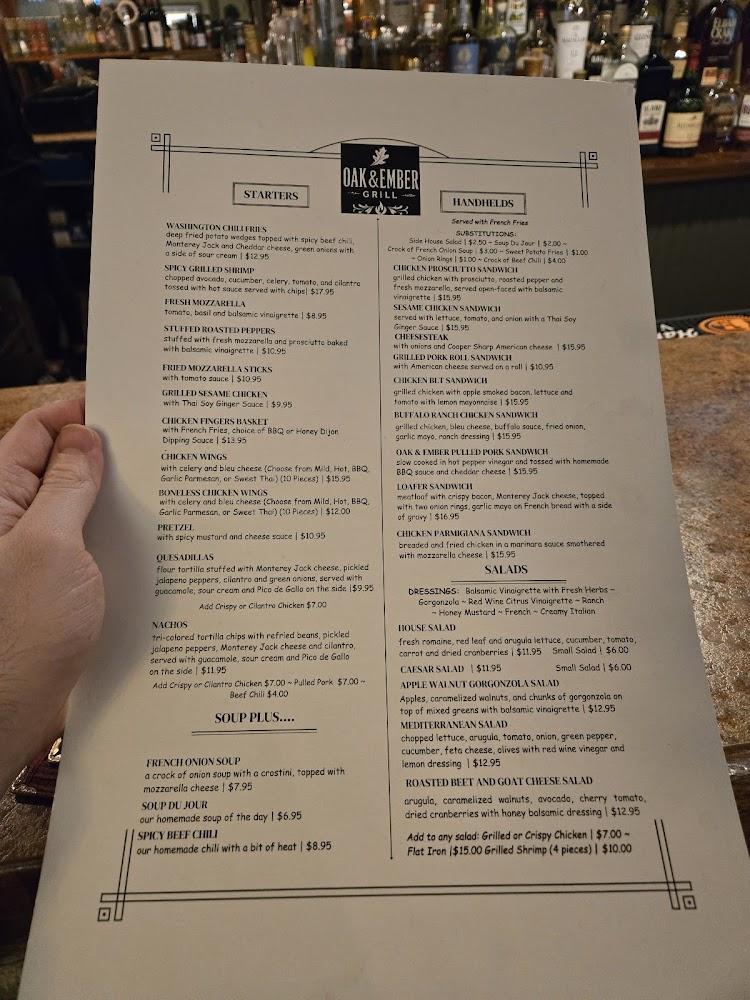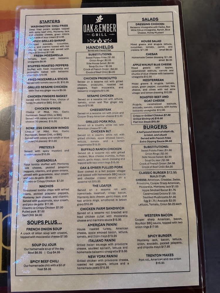 The menu at Oak & Ember Grill showcases a blend of comfort food and innovative dishes. Diners can choose from starters like the Spicy Grilled Shrimp or Fried Mozzarella Sticks, followed by hearty handhelds such as the Grilled Pork Roll or Cheesesteak. Burgers steal the spotlight with options like the Classic Burger and Western Bacon Burger, made with a unique blend of meats for unmatched flavor.